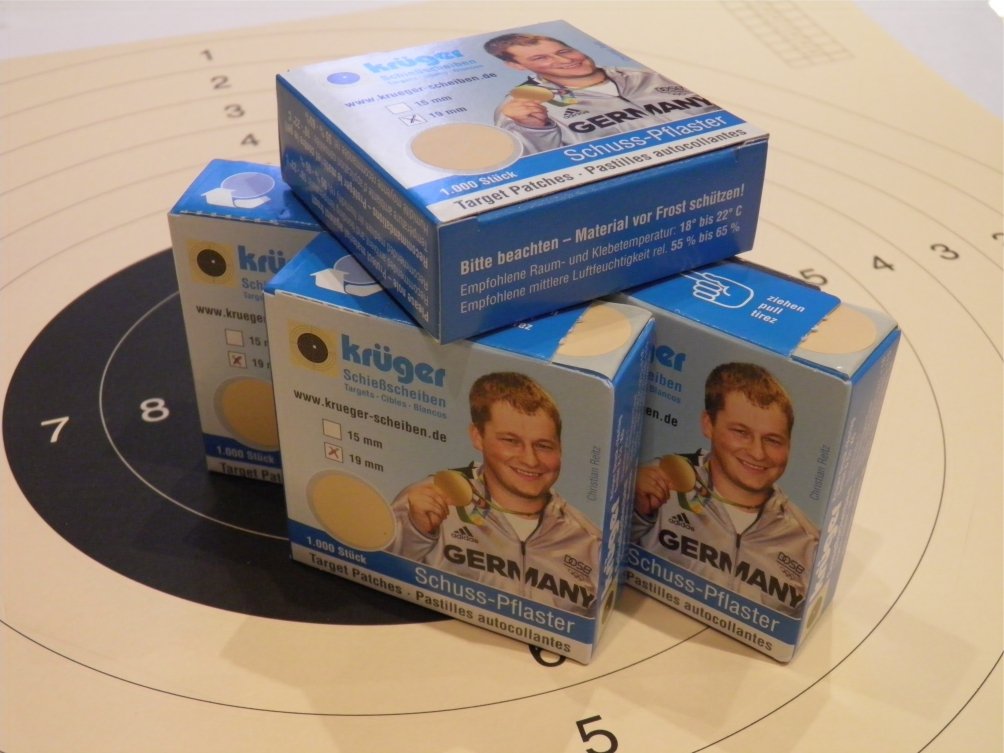 Zaklejki beżowe fi 19 mm niemieckiej firmy KRUGER w dozowniku.